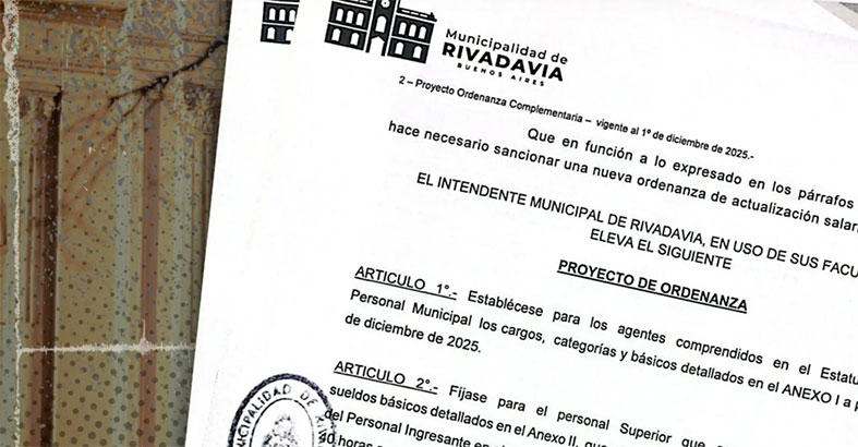 El intendente de Rivadavia, Juan Alberto Martínez, envió un proyecto de ordenanza donde aumenta un 4% los sueldos municipales, pero según denunció la oposición tras la sesión de este lunes, “traía otras cuestiones ocultas”. Sostienen que se da “poder total para que el intendente pueda otorgar bonificaciones a los funcionarios políticos, pudiendo llegar a cobrar hasta un 100% más”.