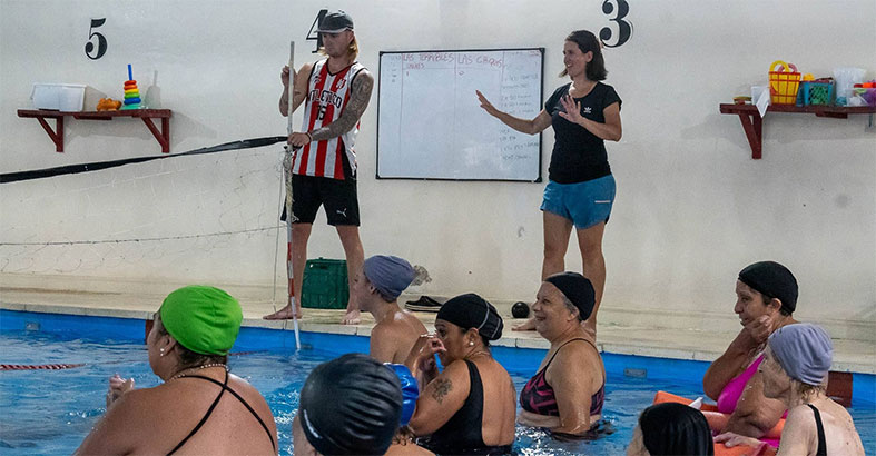 Los integrantes del programa de adultos mayores “Tejiendo Vínculos” participaron este jueves de la primera jornada acuática. Jugaron, rieron y bailaron en la pileta climatizada del Club Atlético Rivadavia.