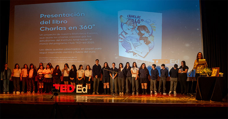 Alumnos del nivel Secundario del Instituto América presentaron el evento final de Clubes TED-Ed en el Cine Teatro Español. Se trata de una propuesta educativa que pone en el centro las ideas de los jóvenes y promueve la creatividad, la expresión y la innovación.