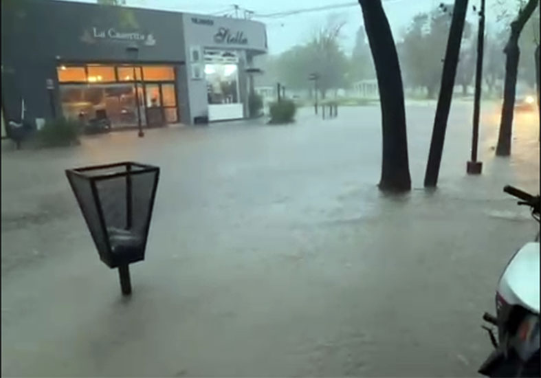 Las intensas lluvias de este martes dejaron calles anegadas por varias horas en la ciudad de América. En pleno centro, en el Post Vía, y en la mayoría de los barrios se hizo sentir la gran cantidad de milímetros caídos en pocas horas. La misma postal se repitió en distintas localidades de la región.