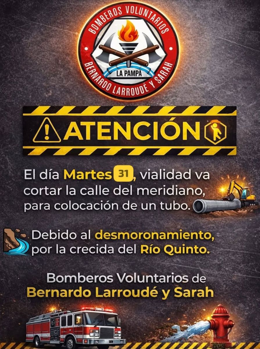 La información del desmoronamiento la dieron los Bomberos de Bernardo Larroudé (La Pampa). También informaron que el martes 31 deberán colocar en un tubo en el Meridiano V, ante esta situación.